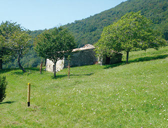 Cammina fino a quando vedrai una piccola casetta in legno e qui ritroverai alla tua sinistra il sentiero. Attraversa un terreno con dei ginepri e rose canine e arriverai sui prati dei fienili di Gaiana. Incrocerai il sentiero n°1 e con pochi passi in discesa sarai arrivato al rifugio G.E.M.B.A. riconoscibile dal pennone con la bandiera.
